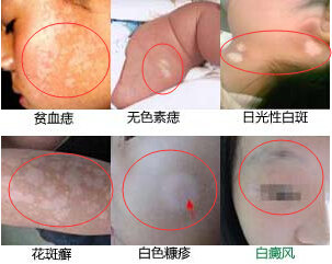 身上出现白斑可能是某种皮肤病的征兆,患者需要提高警惕,白斑可能是贫血痣、白色糠疹、.花斑癣等皮肤疾病。据临床诊断和数据统计:若白斑无痛痒、扩散,90%的可能是白癜风。你可以参照以下图片来初步判断: 确诊白斑病情,建议做皮肤wood灯检查 帅海林主任表示:光从肉眼来看,贫血痣、白色糠疹、花斑癣、白癜风等皮肤疾病的白斑很容易混淆,因此需要通过科学精准的检查来确诊病情。目前,小医院、小诊所多采取医生看诊,诊断虽快但易误诊,75%患者对医生看诊检查结果查不认同。 最有效的诊断方法是,就是做一个德国奥曼Wood灯检测,白癜风在德国奥曼Wood灯检测下,白癜风的皮损为纯白色,与周围正常皮肤对比鲜明,界限清楚。临床上肉眼有时难以发现正常皮肤特别是白皙皮肤上的浅色斑。用WOOD灯可轻松检测白癜风,并可与其他白斑疾病相鉴别。>>>wood检测需要多少钱? 症状了解:白癜风不同阶段症状特征 一、初期症状 白癜风初期,白斑数目较少、面积较小、仅发生于身体的某个部位或某一神经节段。白斑初发时颜色较浅、多成指甲和钱币大小。 二、中期症状 白癜风中期,白斑数目会逐渐增多,原有白斑逐渐向正常的皮肤移行、扩大、境界模糊不清,相邻的白斑还可相互融合而连成不规则的大片,泛发全身,如地图状,白斑颜色逐渐加深。 三、后期症状 白癜风后期,白斑相互融合成不规则大片遍及全身、呈纯白色或瓷白色、皮损部位黑素细胞数目减少或消失、白斑面积累及体表面积50%以上。 医生提醒:白癜风不及时治疗,会扩散变多 发现白癜风后应及时的采取科学规范化的治疗措施。白癜风虽然不痛不痒,但会严重人的容貌,让白癜风患者产生自卑的心理;白癜风的危害还不仅如此,白癜风不及时治疗还会引发多种恶性疾病,如斑秃、银屑病、恶性肿瘤、支气管哮喘等。因此患者发现白癜风时不要麻痹大意,一定要引起重视,积极进行治疗。 白癜风应该如何科学治疗 帅海林主任指出,治疗白癜风,首先要查明致病病因,然后对白癜风进行科学的分期、分型、分类。白斑根据发病进程可以分为进展期和稳定期,也分为儿童、成人、老人等不同人群,病因更是复杂吗,不同时期,不同人群,不同病因的治疗原则和手段也不同,因此白斑的分型分诊治疗很重要。 武汉环亚中医白癜风医院立足于立体多维的科学检查检测,能够通过八大权威检测精确找出导致白癜风发病的一个或多个病因,针对不同年龄、不同类型、不同病情的白癜风患者,通过根据患者的自身因素制定出个性化的治疗方案。