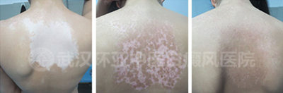 武汉汉阳区的李某,两年前发现背部白斑,曾在多家医院治疗,无奈效果不佳,一直反复发作,经人介绍来院治疗。两年来,她饱受白斑折磨,背部白斑反反复复,幸好在武汉环亚得到科学系统化治疗12周后,背部白斑基本消失。