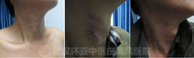 33岁的李某是一家理发店的老板,由于工作压力大,平时饮食不规律,偶然一天发现自己颈部出现一块豆粒大小的白斑,因为白斑面积小,加上不疼不痒的,就没在意,只是到了附近小诊所拿了药膏涂抹。不仅没效果,而且李某颈部的白斑不断扩散,去当地医院检查确诊为白癜风,经过多次的治疗也不见好转,在朋友的推荐下来到我院。经过三个疗程的治疗,李某颈部白斑逐渐消失,恢复良好。白癜风的恢复不仅要接受正规科学治疗,而且也要保持良好的心态,李某正是因为积极主动配合治疗才使得白斑恢复较快并且至今没复发。