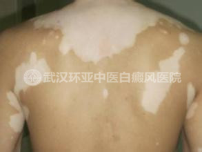武汉汉阳区的李某,两年前发现背部白斑,曾在多家医院治疗,无奈效果不佳,一直反复发作,经人介绍来院治疗。两年来,她饱受白斑折磨,背部白斑反反复复,幸好在武汉环亚得到科学系统化治疗12周后,背部白斑基本消失。