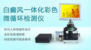 白癜风一体化彩色微循环检测仪是一种新型光电仪器,无创伤、无任何副作用,主要用于对甲襞微循环检查,具有高清晰、便携、安装操作简单等特点。可以连接电脑使用,自动诊断分析。